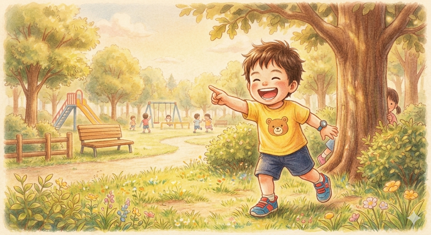そんなカウントが始まるやいなや、公園でのんびり過ごしていたパパとママ、妹ちゃん、そして一緒に来ていた従姉弟たちとそのパパママは、一斉に隠れなければならない。