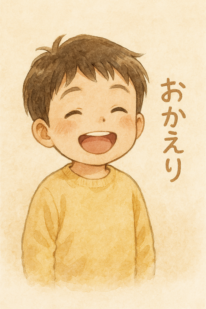 いつの間に覚えたのか分からないけれど、初めて息子くんに「おかえり」と言ってもらえた。その一言で笑顔になり、とっても癒され、とってもとっても嬉しかった。
